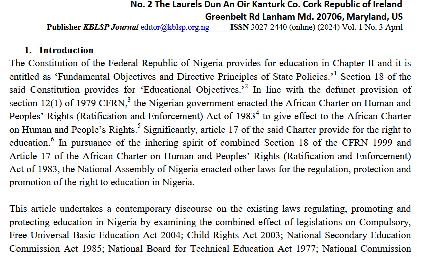 ESTABLISHING THE LEGAL AND REGULATORY FRAMEWORK ON EDUCATION IN NIGERIA